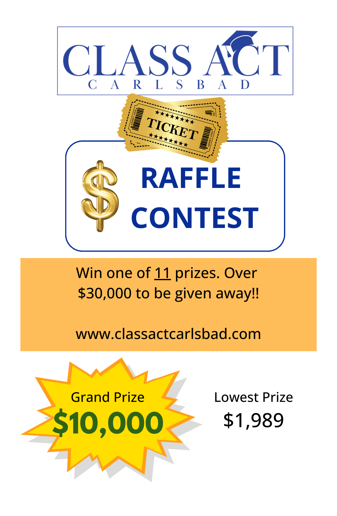 • Online: Visit our website at www.classactcarlsbad.com to donate (tax deductible) or purchase a raffle ticket (non-tax deductible).